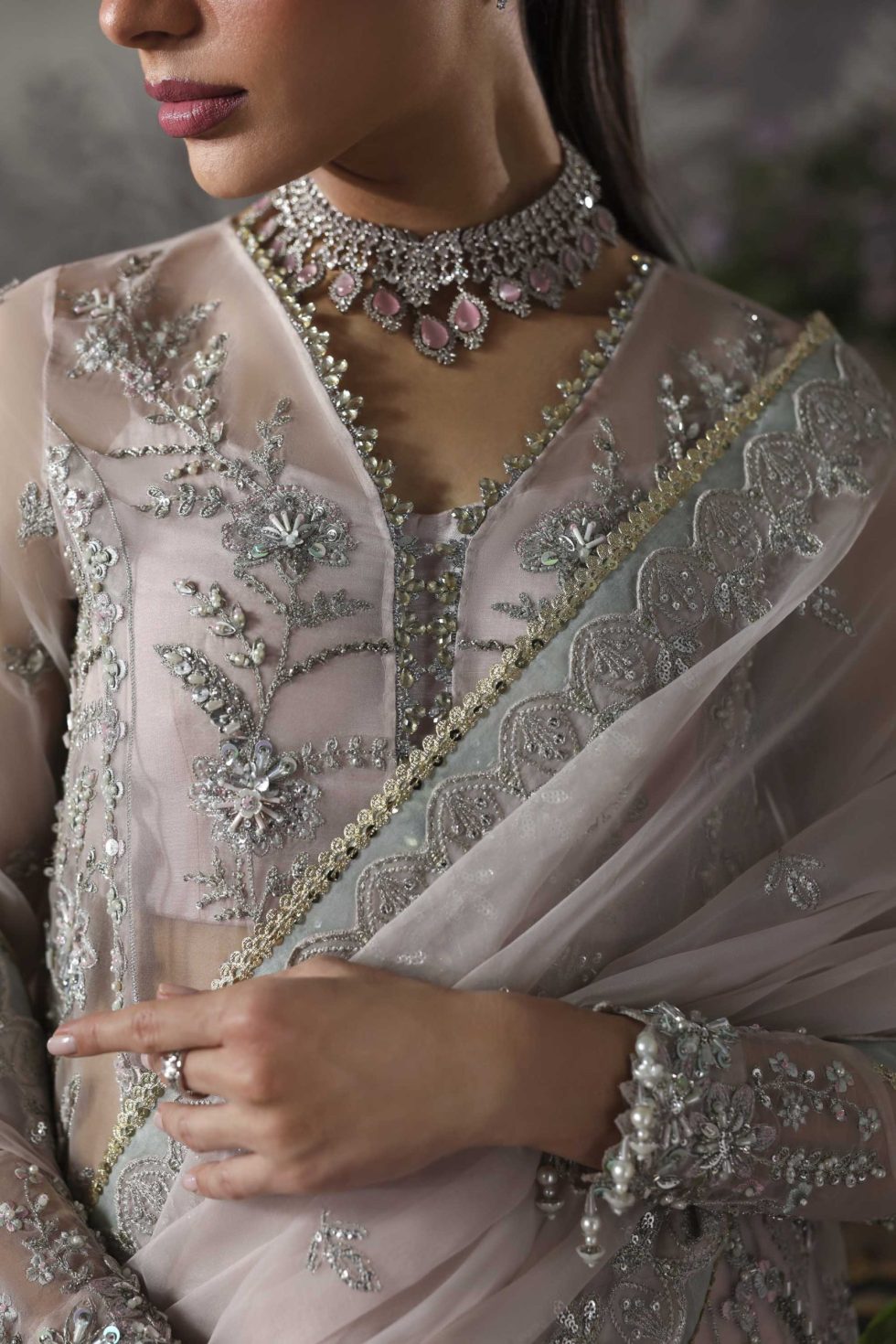 - Organza Embroidered Hand Embellished Sleeves 26″