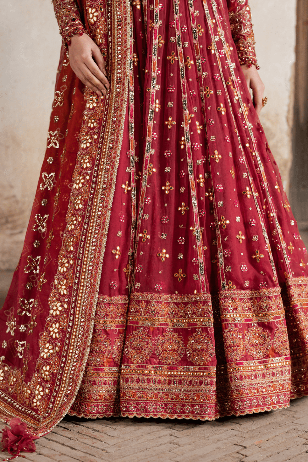 Frock Front & Back: Embroidered Chiffon With Foil Work