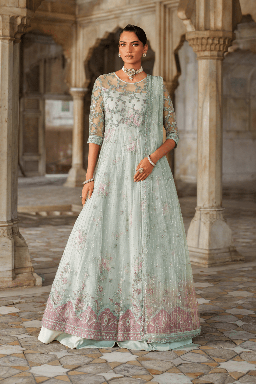 Frock Front & Back: Embroidered Net (6.5M)